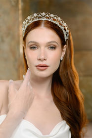 Pearl Coronet – A bridal headpiece crafted from hundreds of crystals and gleaming pearls, adorned with rhinestones and Swarovski crystals.